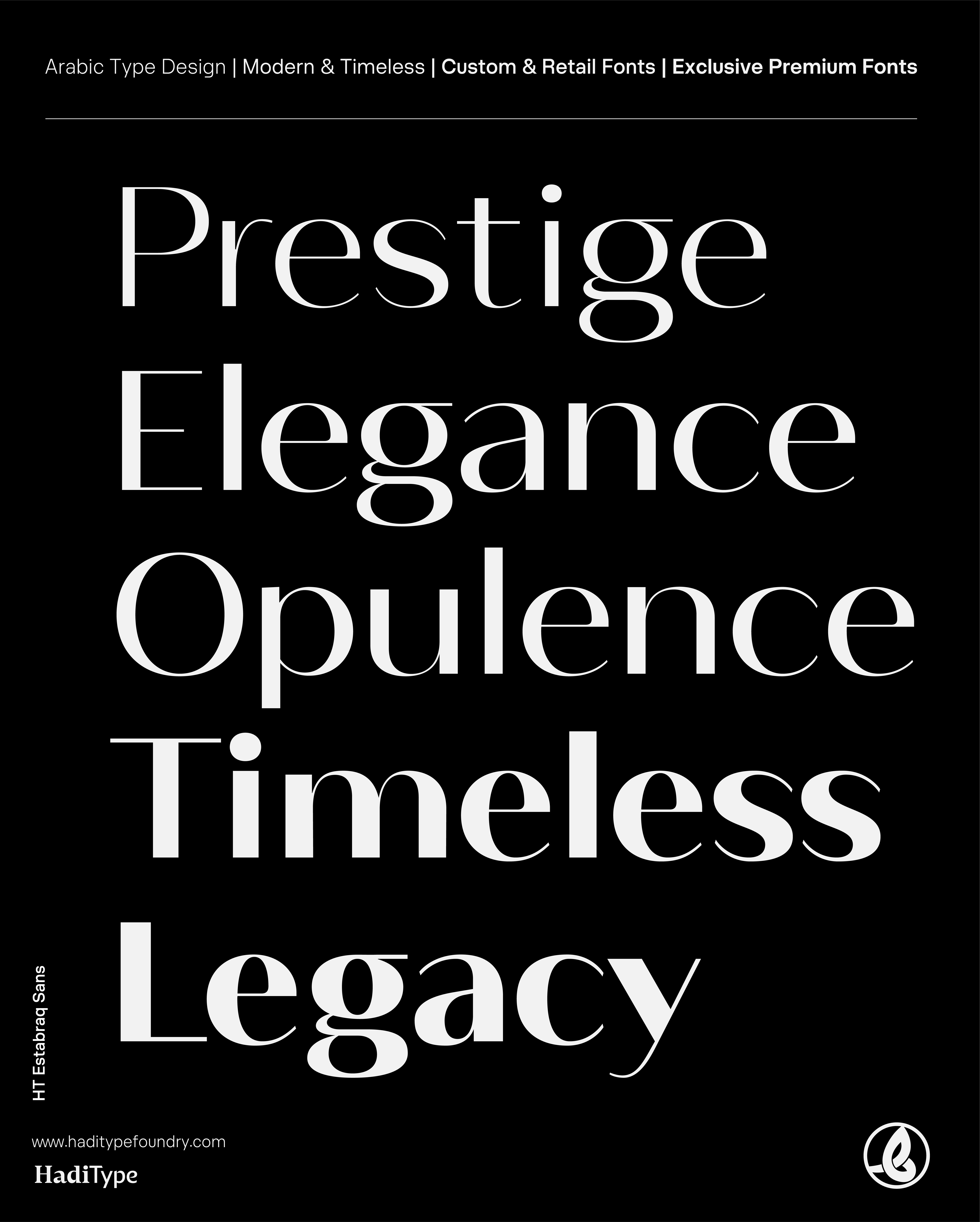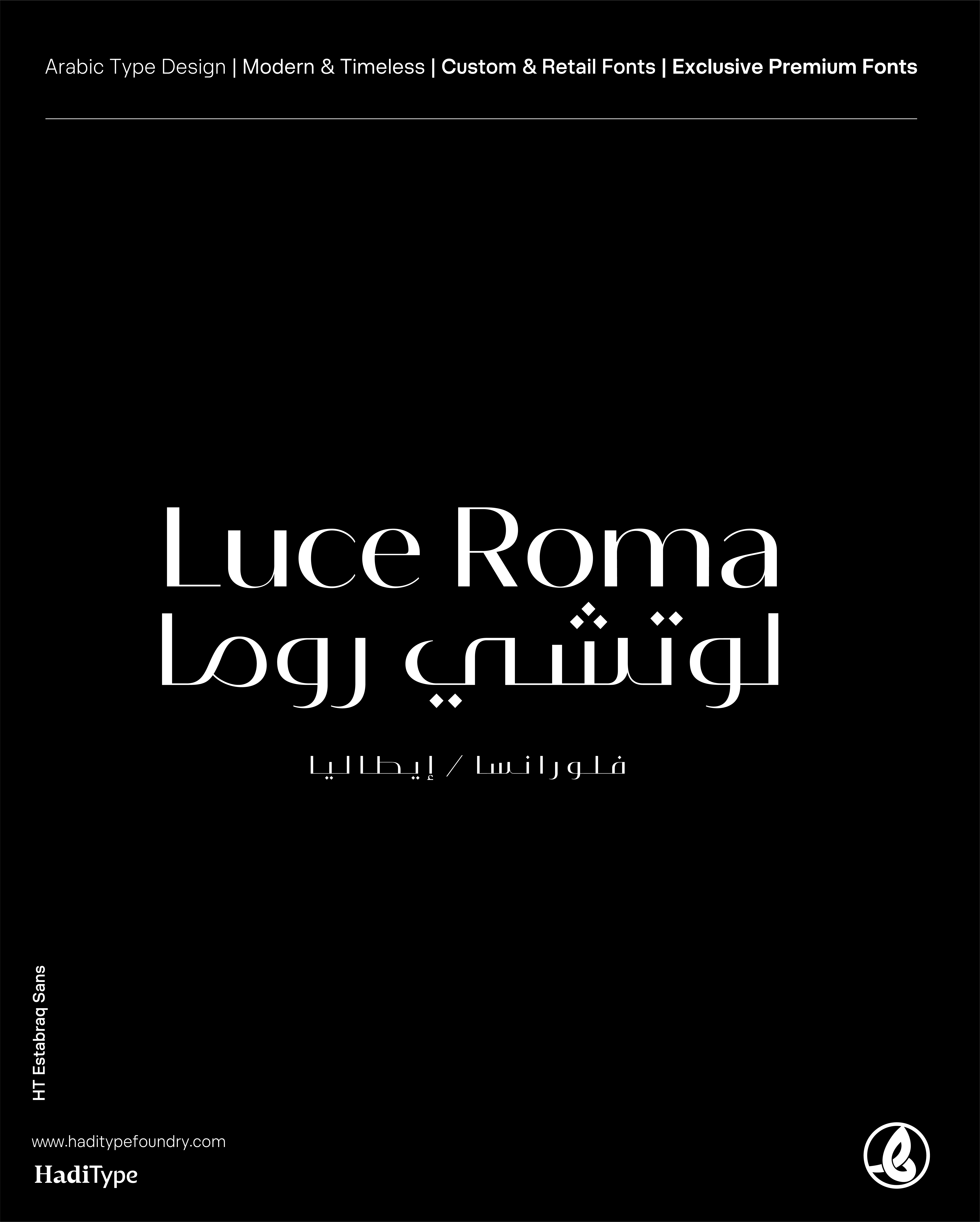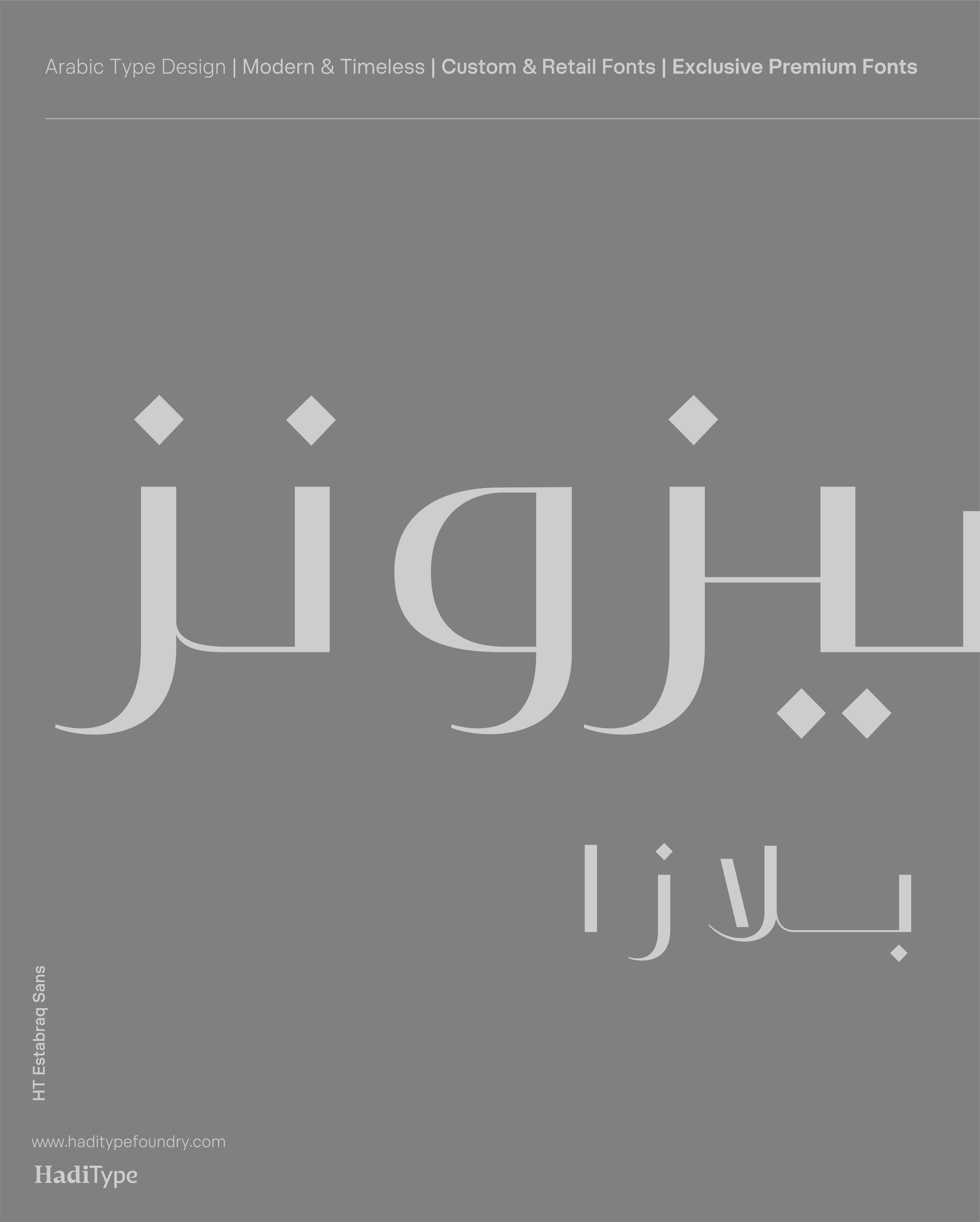 Istabraq is a luxury Arabic–Latin typeface family available in two complementary styles: Istabraq — the classic serif-inspired design rooted in Kufic spirit and European luxury aesthetics, and Istabraq Sans — a contemporary, streamlined counterpart tailored for modern branding, packaging, and editorial titles.